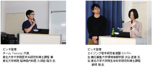 第2部では、学生や若手研究者、起業家4チームによるピッチセッションが行われ、てんかんに特化した薬剤選択支援AIの開発やエイジング研究を加速させる取り組み、研究者としての情報発信方法、イオントロニクス技術を活用した経皮DDSについてなど、革新的なアイデアが紹介されました。ピッチセッションでは、各発表者に対するフィードバックも行われ、参加者は活発な意見交換を行いました。
