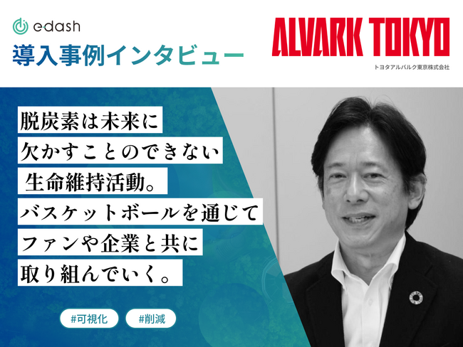 CO2排出量可視化のクラウドサービス「e-dash」を提供するe-dash株式会社(本社:東京都千代田区、代表取締役社長:山崎冬馬、読み:イーダッシュ、以下「当社」)は、プロバスケットボールリーグB.LEAGUEに所属するトヨタアルバルク東京株式会社(本社:東京都文京区、代表取締役社長:林邦彦、以下「アルバルク東京」)が、ファンや地域社会、パートナー企業と共に取り組む社会的責任プロジェクト「ALVARK Will」を通じて実施した、e-dashを活用したカーボンニュートラルアクションについて取材した導入事例記事を公開したことをお知らせします。