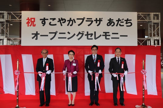 4月6日(日)、「すこやかプラザ あだち」のオープニングセレモニーが行われました。近藤やよい足立区長は挨拶の中で、「『すこやかプラザ あだち』ができたことによって、足立区の医療・介護の連携が一層強まった、区民の健康意識が変わったと言ってもらえるように、今後も区として注力していく。区民の皆様にも大いに活用してもらいたい」と意気込みを語りました。
