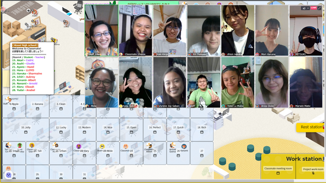 児童2名に対しフィリピン人講師1名が付き、2Dメタバース上で英会話のレッスンを行います。