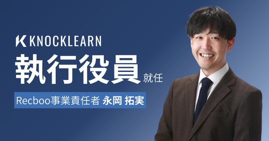 50社を超えるVC/CVCと提携しながらスタートアップや上場ベンチャー企業を中心にHRコンサルティング事業(採用コンサル~採用代行の一気通貫型サービス)「Recboo」やHR領域に特化したAIソリューション「AlgorHRm(アルゴエイチアール)」を提供する株式会社ノックラーン(本社:東京都大田区、代表取締役:福本 英)は、弊社事業開発マネージャーとして全社横断の事業推進を担ってきた永岡 拓実が、2026年2月1日付で、執行役員 兼 Recboo事業責任者に就任したことをお知らせいたします。