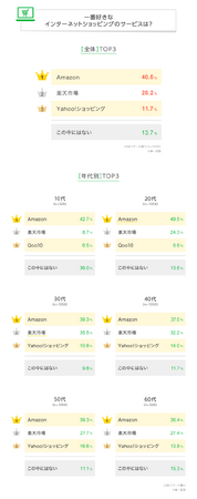 代表的な大手総合ECモールの中で、一番好きな「インターネットショッピングのサービス」(※)について聞きました。