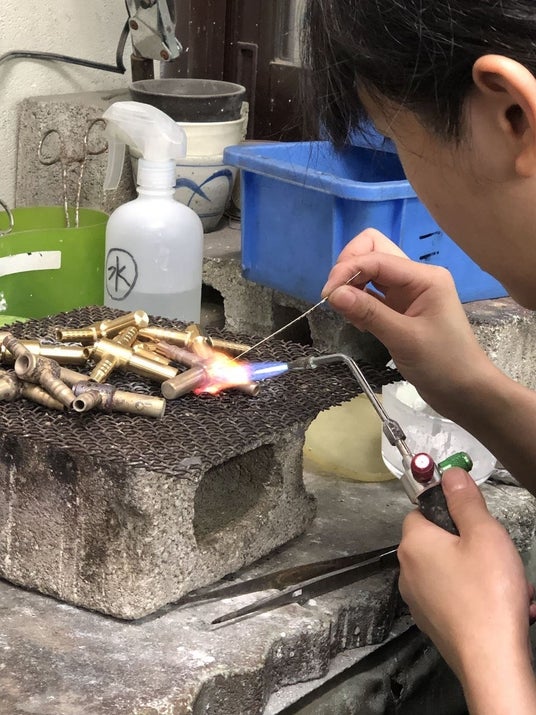 『三祐医科工業』には70代のベテラン職人から30代の若手女性職人が在籍。前代表である保彦氏も製造に携わり、丁寧な手仕事を続けています。中には初代・克行氏から直接技術を学んだ職人も在籍しており、50年以上に亘って培われてきた技術が医療器具作りに活かされています。