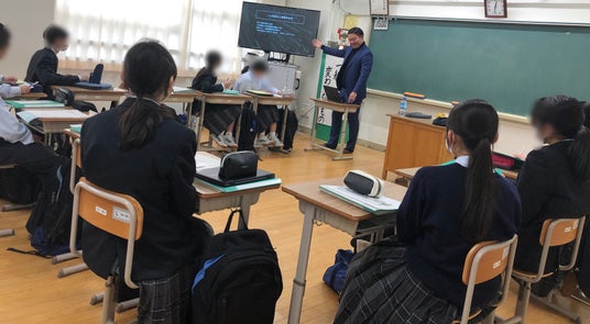 <「職業人の話を聞く」で教壇に立つ小林祐太氏>