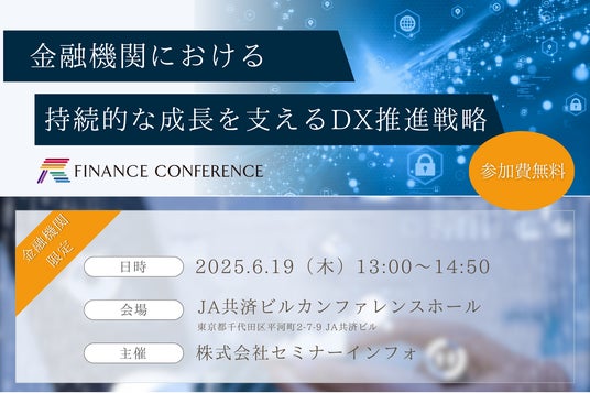 株式会社セミナーインフォ(本社:東京都千代田区 代表:小西 亘)は、2025年6月19日(木)にFINANCE CONFERENCE「金融機関における持続的な成長を支えるDX推進戦略」を開催いたします。