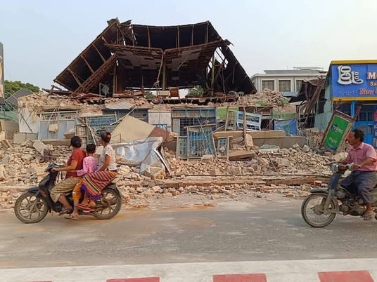 震源地のザガインの様子。街の80%が被害を受けた(写真:地元メディア)