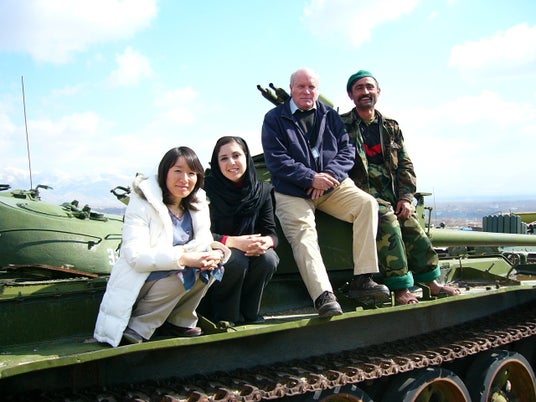 外交官時代に現地の武装解除で武装勢力から集めた戦車の上で国連スタッフとアフガン軍兵士と