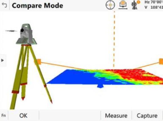 最高精度を有すMS60は公共測量用途に適していますが、要求される作業精度に対応した選択肢を増やしてほしいとのお客様の声を反映させ、MS60JPを新たに発表しました。MS60JPは、毎秒最大30,000点を計測できる非常に高速なスキャン速度をはじめとし、用途に合わせたエリアの定義方法の拡張や、天頂方向のスキャンアルゴリズムの改善など、従来のスキャニング機能を受け継いでいます。またMS60JPにはボタンを押すだけで自動的に器械高を計測する独自のAutoHeight(オートハイト)機能も搭載されているため、測量を開始するまでの作業時間を短縮し、人為的な器械高の入力ミス防ぐことができます。計測者はMS60JPの「表面検査」アプリを使用し、取得した点群データから面の凹凸分析や出来形確認を実行し、現場で直接出来形評価を行うことができます。