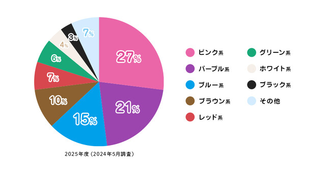 女の子は、ピンク系・パープル系が人気上位にランクインしました。また、ブルー系やブラウン系など、幅広い色から選択されていることが分かりました。