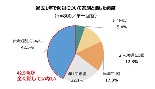 ■家族と防災について「まったく話していない」42.5%、防災会話をする家庭ほど備蓄率が高い傾向