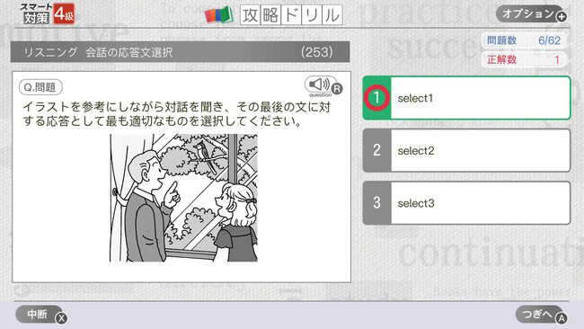 空所補充問題や長文読解問題に対応しており、リスニング問題では実際に音声を聴き解答します。