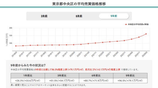 1.マンションナビのデータをもとに、9年前(2016年)の価格推移と比較