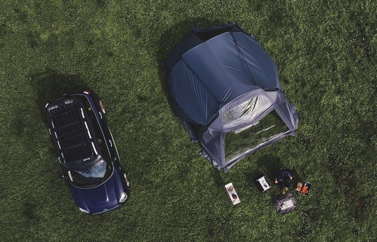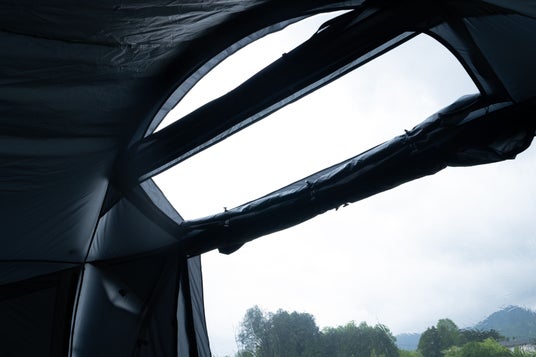 テント上部に備えられた2つの天窓にもTPUウィンドウを装着可能。昼は太陽の柔らかな光を採り込み、夜には星空を眺めながら過ごす贅沢な時間を演出します。天候の変化にも即座に対応でき、内部から簡単にクローズ操作が可能です。