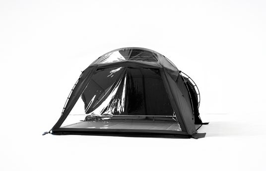 「外の景色を感じながら、風や寒さを防いで快適に過ごしたい」という声に応えて誕生したオプションパーツ。冷気をしっかり遮りながらも、TPU素材の透明感を活かして外光をテント内に採り込む設計で、開放感とプライバシーの両立を実現しています。