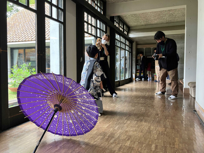 3年目となる本年は、今回が初めてとなる小平市の「東京サレジオ学園」にて2023年9月23日(土)に撮影会を行いました。少し緊張気味のお子様たちでしたが、生まれて初めて袖を通すきものに目を輝かせながら、笑顔が溢れる一日となりました。
