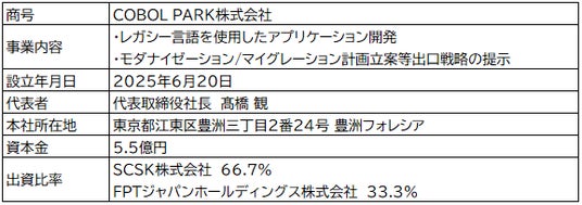 FPTとSCSKは合弁事業を行うための新会社「COBOL PARK株式会社」を設立し、事業を開始したことをお知らせいたします。