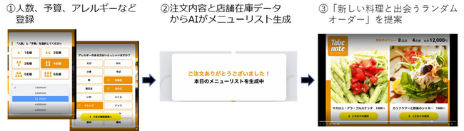 Tabe nateは、今まで知らなかった食材や料理と出会うことで、「食べる」を発見や体験として楽しめるAIアプリです。また、お店の在庫データと連携させることで、在庫の全食材を生かしたランダムオーダーを提案、フードロス削減にも貢献します。