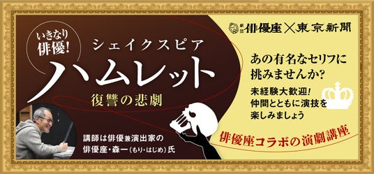 今回の第5シーズンでは、シェークスピア作品(『ロミオとジュリエット』、『夏の夜の夢』)を題材に開催した第1・2シーズンの講師を務めた、ベテラン俳優で演出家の森一(もり・はじめ)氏がカムバック!!シェークスピア作品の中から四大悲劇に数えられる復讐劇「ハムレット」に挑戦します。イギリスの王立演劇学校でも学んだ一流講師の指導のもと、ハムレットやオフィーリアになりきり、あの有名なセリフに挑みます。