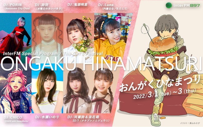 この度、InterFM897(TOKYO:89.7MHz)は、2022年3月1日(火)~3日(木)の3日間にInterFM Special Program「The Girl’s Festival 『おんがくひなまつり』」を特別番組として放送することが決定しました。“女の子の成長を祝う” 桃の節句「ひな祭り」に合わせて、「女性への応援」をテーマにしたInterFMとして初の企画である特別番組『おんがくひなまつり』を放送します。