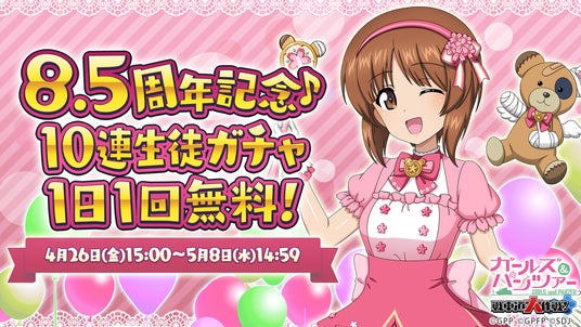 『ガールズ&パンツァー 戦車道大作戦!』は皆さまのおかげで5月に8.5周年を迎えます。日頃のご愛顧に感謝して様々な記念施策を用意しております。第2弾以降の詳細も、随時お知らせしていきますので、お楽しみに!