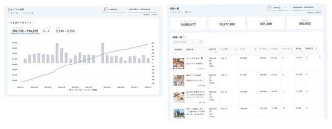 Instagramのアプリ上でしか確認できなかったインサイト情報が、PC上でデータ管理・分析が可能です。