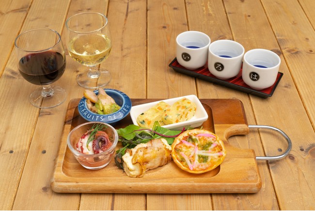 丹鉄初、 曜日によって提供料理が異なり、“金曜日や土曜日、祝日はお酒が飲みたい!” “次の日仕事があるけど観光列車を楽しみたい”という方にぴったりのコースです。「地酒飲み比べコース」は、地酒(3種)またはワイン(2種)のいずれかを選択でき、マリネやピッツァなど日本酒にもワインにも合うおつまみを5種ご用意しております。「スイーツお楽しみコース」は、くろまつの松の印が入ったどら焼きに舞鶴抹茶餡や丹波栗クリームなど地元食材を使った9種類の豊富なトッピングから、自分だけのオリジナルどら焼きを作ることができるコースです。レストラン列車から望む絶景とともに、お酒やスイーツをお楽しみください。