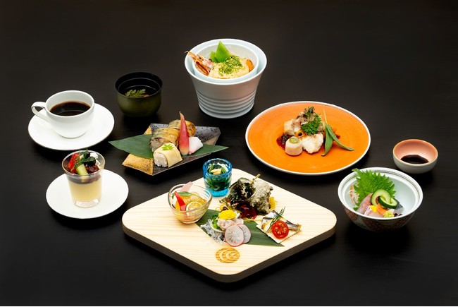 “天地山海”をテーマに、日本海の自然豊かな「海の京都」の海の幸、里山の風景が美しい「森の京都」の山の幸を使用した、見た目にも美しい色鮮やかな懐石料理をご用意しました。天橋立駅から西舞鶴駅まで海沿いのルートを走行し、海が目の前に広がる「奈具海岸」では約15分停車時間を設けており、レストラン列車ならではの、ゆっくりと絶景を眺めながら過ごす特別なひと時をお楽しみいただけます。