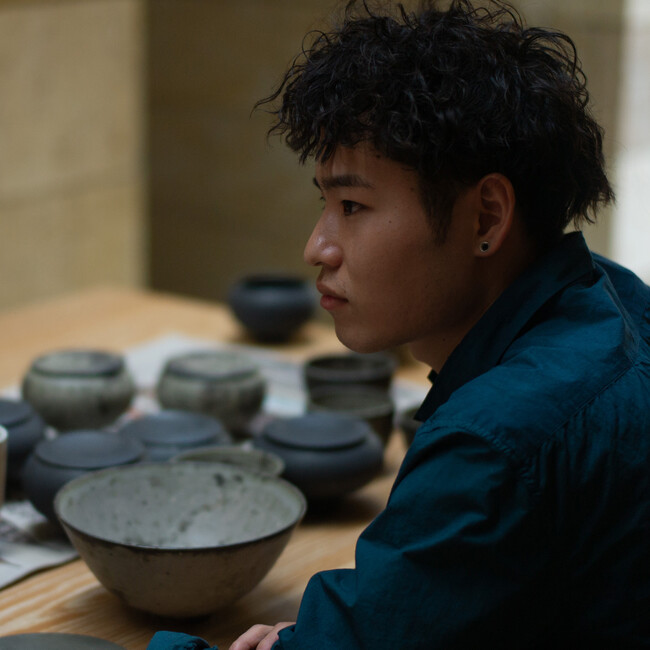 錦山窯1994 年生まれ。2017には年京都精華大学芸術学部素材表現学科陶芸コース卒業し、2018年に錦山窯入社。100 年以上続く錦山窯で金を扱う洗練された九谷の技法を職人から学ぶ一方、釉薬による人の力の及ばない自然の力が醸し出す表情を日々探求している。