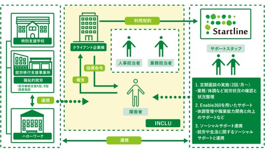 障害者雇用支援を通じて“誰もが自分らしく生きる社会“を目指す株式会社スタートライン (本社:東京都三鷹市、代表取締役:西村賢治)は、障害者雇用支援サービスサポート付きサテライトオフィス INCLU(インクル)をご利用いただく企業様同士が交流する座談会を開催しました。INCLUを利用する中で発生した障害者雇用における好事例を発表することで、他企業にも好事例が生まれる循環を作ることを狙いとしています。INCLUをご利用いただく複数の企業様の中から、24社の企業様が参加し登壇企業の事例発表をお聞きいただきました。今回はその中から2事例をピックアップしてご紹介します。
