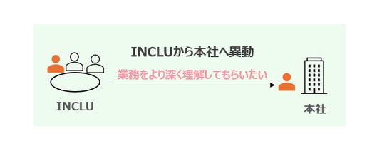 各部門からINCLUに切り出している業務について、一連の流れを管理する人材の育成をしたいと考えていた。INCLUで活躍する人材にそのポジションを担ってもらいたかったが、そのためにはINCLUから本社に異動する必要があった。