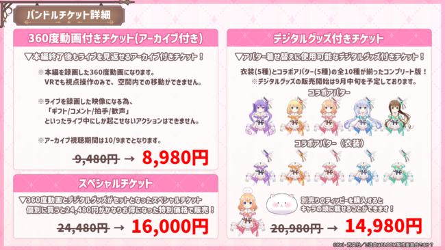 ※デジタルグッズ付きチケットを購入された方は、デジタルグッズが販売開始され次第、アカウントにコラボアバター及びコラボ衣装が付与されます。