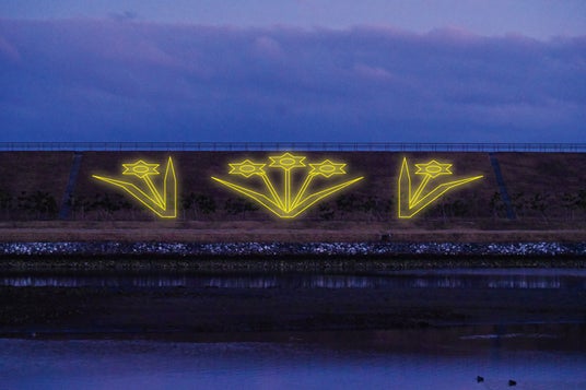 スイセンの図案光の地上絵の図案には「スイセン」の花を選定。ヨーロッパでは、寒い冬を乗り越え、いち早く春を告げる花として「希望の象徴」とされているスイセン。当公園でもタピック45の国道45号沿いに、鎮魂と未来への願いを込めて市民協働により植えられており、4月の開花の一足先に防潮堤に光の花を咲かせます。