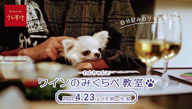 「BISTRO うしすけ」にて、『わんちゃんとワインのみくらべ教室』を開催いたします。