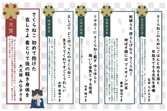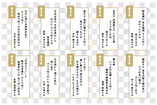 最後になりますが、「さくらねこ短歌コンテスト」にご応募いただいた皆様、ならびに審査員の皆様、協賛いただいた企業様に心より感謝を申し上げます。