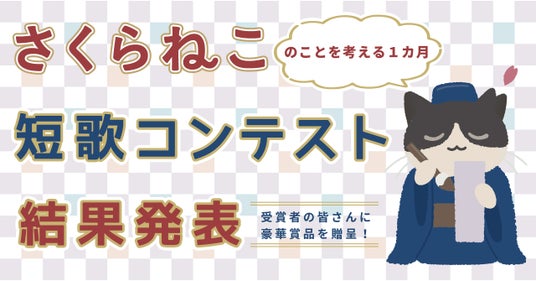 関連リリース:「さくらねこ短歌コンテスト結果発表!~1,654首のなかから大賞、各審査員賞、優秀賞が決定~」