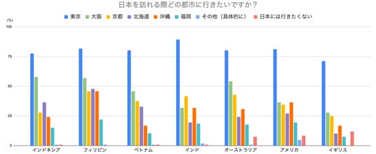 2. 日本を訪れる際に最も行きたいのは「東京」、アジア圏では「大阪」「北海道」も高い人気