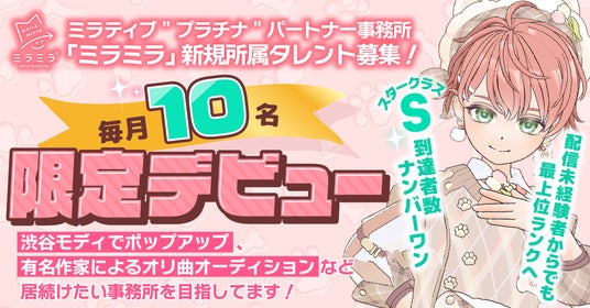 OTAGROUP株式会社(代表取締役:下西 竜二)はスマホ画面共有型ゲーム配信プラットフォーム「Mirrativ」パートナー事務所「ミラミラ」に所属するライバー「よう」が初配信から80日目でスタークラスSに到達したことをお知らせいたします。