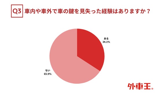 輸入車オーナーの方に「車内や車外で車の鍵を見失った経験はありますか」と尋ねたところ、「ない」と答えた方が65.9%を占めましたが、意外にも「ある」と答えた方が34.1%もいることが分かりました。