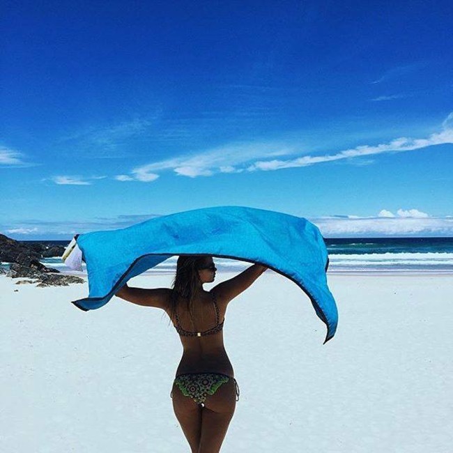 従来のブランケットと違い、Laguは砂が通り抜けて、くっつきません(濡れている時でも!)