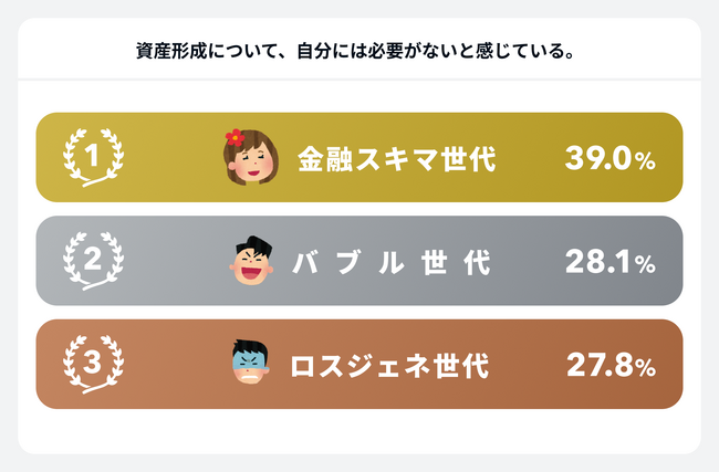 ・資産形成について「自分には必要がない」と感じる1位「金融スキマ世代」