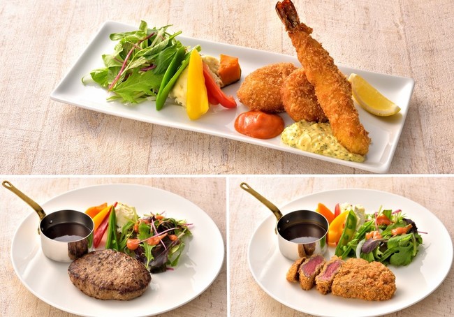 また、「ハンバーグにビーフカツレツ、カニクリームコロッケ、大好きなメニューを全部食べたい!」そんな欲ばりな夢を叶える『大人様ランチ』のほか、平日ディナータイム限定で『みなとじまディナープレート』も販売いたします。