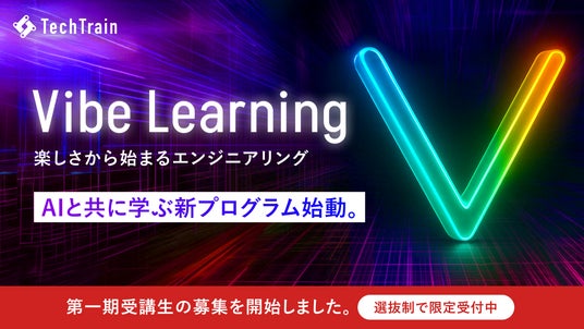 「テクノロジーを支える、全ての人のターミナルに。」を掲げるTechTrain(株式会社TechBowl 本社:東京都千代田区、代表取締役社長:小澤 政生、以下「TechTrain」)は、生成AIと共にプログラミングを学ぶ新プロジェクト「Vibe Learning(バイブ・ラーニング)」をローンチし、第一期生の募集を開始いたしました。