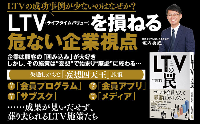 新刊『LTV(ライフタイムバリュー)の罠』は、こうした企業視点がもたらすLTVを損ねる「ボトルネック」の正体を明らかにし、その具体的な解消法を示した「LTV向上の実践ガイド」です。
