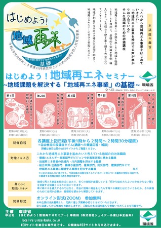 株式会社ジェイアール東日本企画(東京都渋谷区:代表取締役社長 赤石 良治、以下jeki)は、環境省「令和4年度地域再エネ事業の持続性向上のための地域中核人材育成事業」の受託者として、地域に利益をもたらす再エネ導入を推進する地域中核人材の育成を目的に、環境省の主催により開催するオンライン基礎講座「はじめよう!地域再エネセミナー」の参加者募集をいたします。