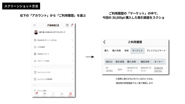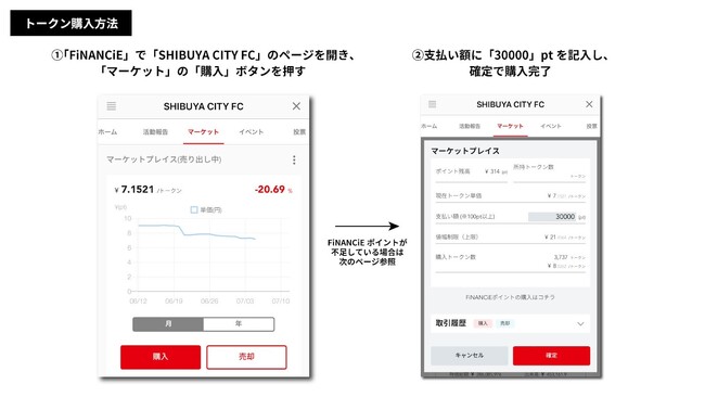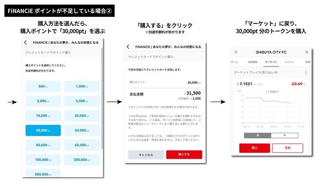 1.「FiNANCiE」アプリ内マーケットにて「SHIBUYA CITYトークン」を30,000pt分以上購入