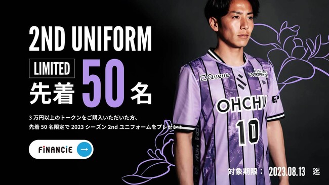 期間内に「FiNANCiE」上でSHIBUYA CITYトークンを30,000pt以上購入いただいた方限定で、SHIBUYA CITY FCの2023シーズン2ndユニフォームをプレゼントいたします。