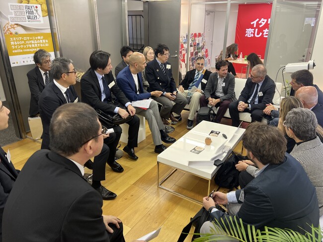 世界イタリア料理週間(11月13日~19日開催)事業の一環として、「世界イタリア料理週間」には、イタリアを代表する美食の宝庫として名高いイタリアのエミリア=ロマーニャ州からエミリア・ロマーニャ州知事Stefano Bonacciniステファノ・ボナッチーニ氏率いる経済視察団来日。在日イタリア商工会議所は、11月14日(火)、イタリアの美食の宝庫・エミリア・ロマーニャ州経済視察団来日を記念したBtoBイベントを在日イタリア商工会議所ミーティングルームにて開催しました。