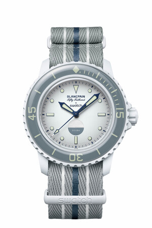 今回の新しいコラボレーションでは、楽しく、遊び心豊かに、しかもSwatchらしさを持ち続ける5種類の新作モデルでこのアイコニックな時計を讃えます。「Bioceramic Scuba Fifty Fathoms」コレクション。これはSwatchで出しているダイバーズウォッチ、SCUBAシリーズにもちなんだ命名です。今回の非限定コレクションでは、卓越した防水性、優れた視認性、機械式ムーブメント、安全な回転ベゼル、そして耐磁性といったFifty Fathomsの特徴を忠実に再現しています。コレクションの5種類のSwatchモデルを創るにあたって、ブランパンとSwatchは、深海からインスピレーションを得ました。地球上の五つの大洋から名前をとったArctic Ocean、Pacific Ocean、Atlantic Ocean、Indian Ocean、Antarctic Oceanです。