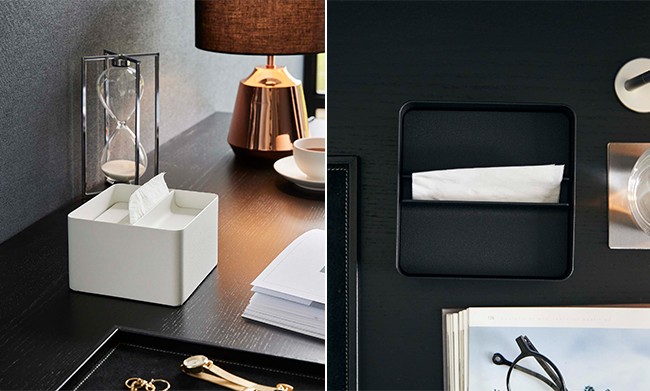 ハーフサイズのティッシュペーパーが収納できるコンパクトなティッシュケース。