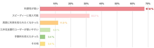 アンケートによれば、各種借入方法を選んだ理由としては「利便性が高い(67.8%)」点が最も多く挙げられた。